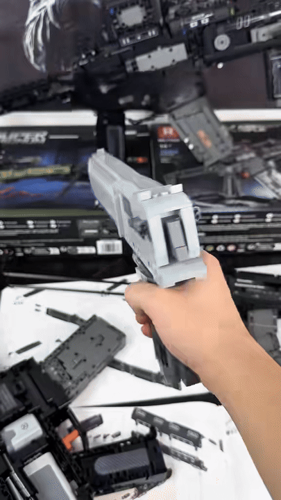 The brick Desert Eagle has the same features as the real one, including a working firing mechanism and realistic reloading!