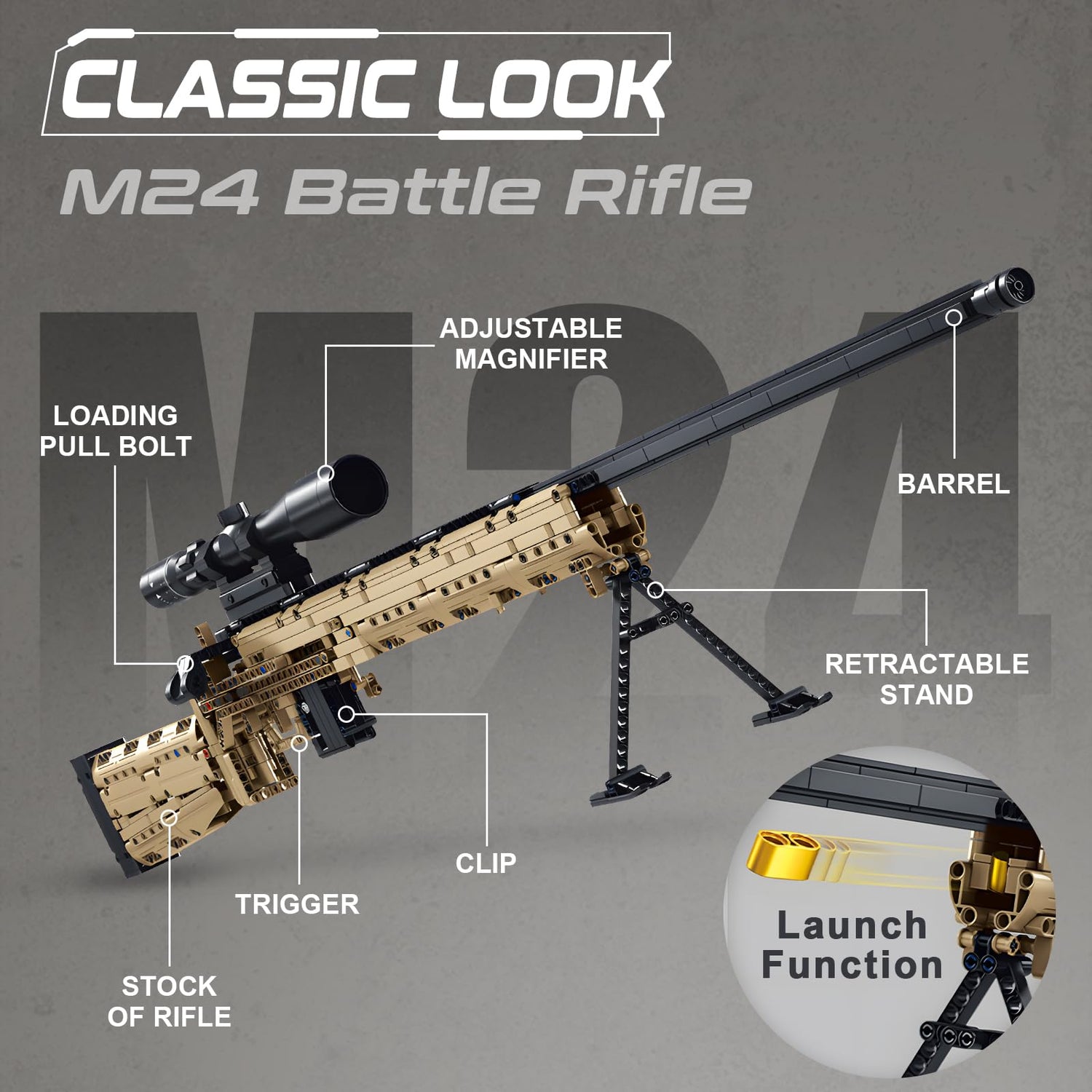 The brick M24 has the same features as the real one, including a working firing mechanism, a fully functional scope and realistic reloading!